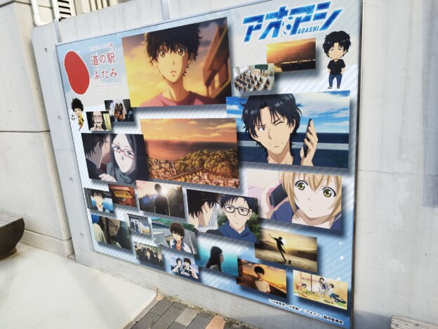 道の駅ふたみにはアニメ『アオアシ』の特大パネルや『アオアシ』仕様の自動販売機も設置されている。ファンなら思わずニヤニヤしてしまうことは間違いないだろう。聖地巡礼の際は一番に訪れて欲しいスポットだ。