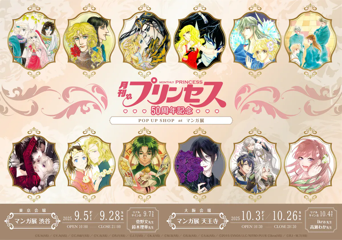 節目を記念して開催される「『月刊プリンセス』50周年記念ポップアップショップ」の大阪会場にて「刀剣乱舞 あうとどあ異聞 刀剣野営」ikra、「茉莉花官吏伝~後宮女官、気まぐれ皇帝に見初められ~」高瀬わかのリアルサイン会が2025年10月4日(土)に実施される。サイン会の抽選申し込みは9月5日(金)19時から受付開始される。