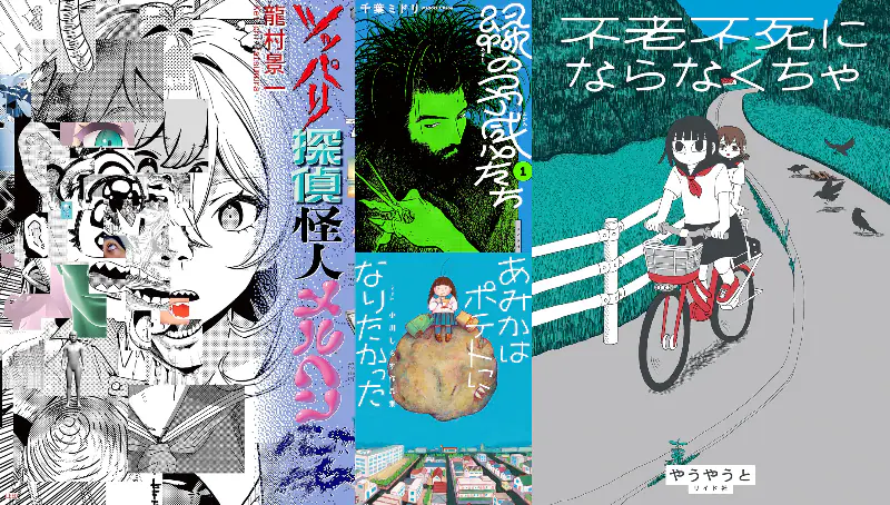 まず紹介したいのは、7月31日に発売された2冊。1995年生まれの龍村景一による初単行本『ツッパリ探偵怪人メルヘン心中』と、1997年生まれの千葉ミドリによる初単行本『緑の予感たち』だ。