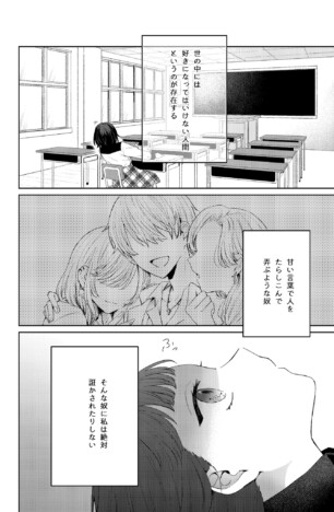 鈴宮:猫谷のイメージする狐坂を初めにたくさん出すことと、本来の狐坂を後半に出すことでギャップを作ることです。狐坂は本来ずっとストレートに猫谷に愛情表現をしています。ただ、猫谷から見ると「軽薄な印象でしかない」というのを表現したくて、ヘラヘラと笑ったり誤魔化したりするシーンを多めに入れました。逆にずっとしかめっ面な猫谷の表情が豊かになることで、心を開き始めているように見せました。2人の変化にあわせて読者の印象も変わるようにしています。