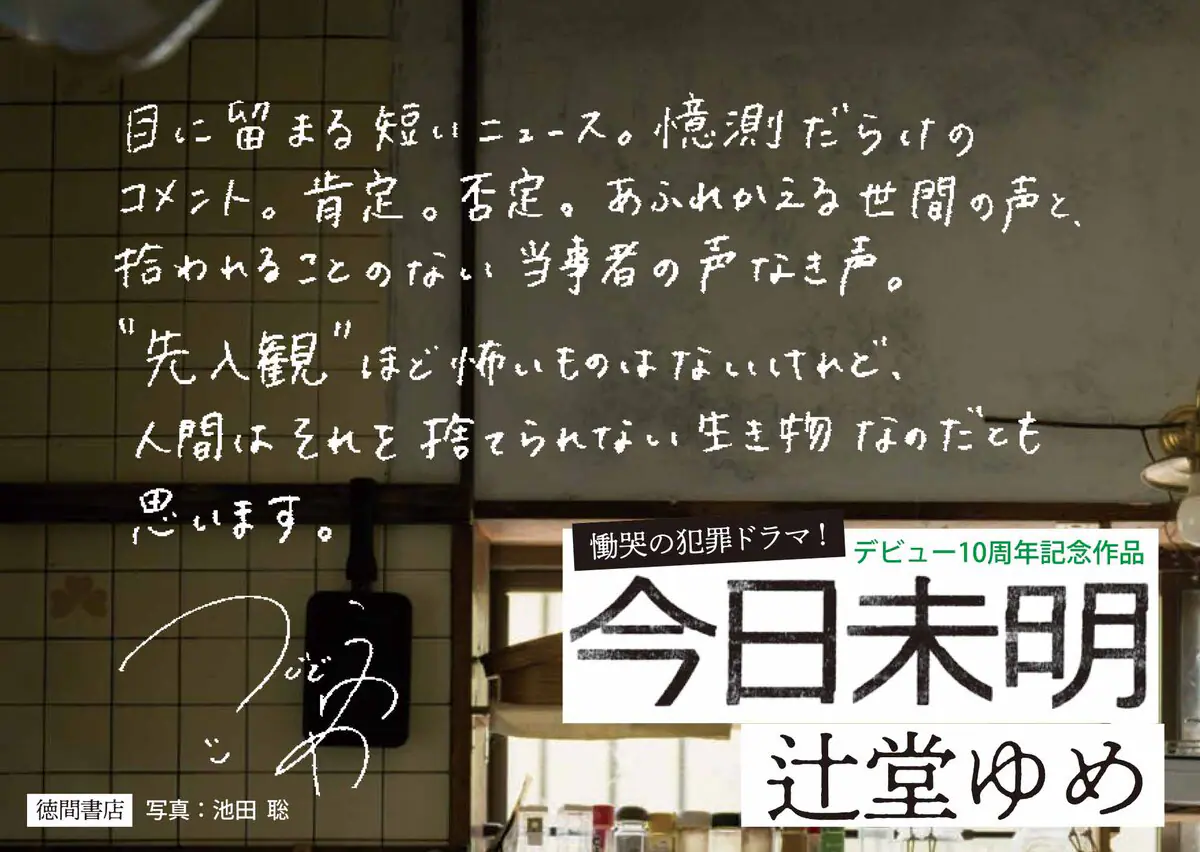 『今日未明』は、大藪春彦賞作家・辻堂ゆめのデビュー10周年記念作品である慟哭の犯罪小説。発売前より各メディアからの注目度も高く、発売前重版も決定。8月9日放送の「王様のブランチ」(TBSテレビ)でも取り上げられ話題となり、1ヵ月過ぎてもなお注目を浴び続けている。