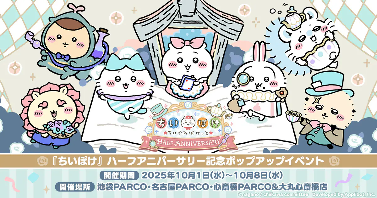 スマホアプリ『ちいかわぽけっと』(以下、『ちいぽけ』)のハーフアニバーサリーを記念したポップアップイベントが2025年10月1日(水)より東京・名古屋・大阪で開催される。
