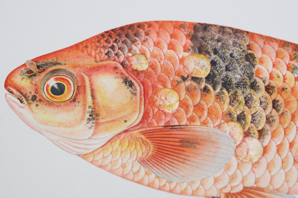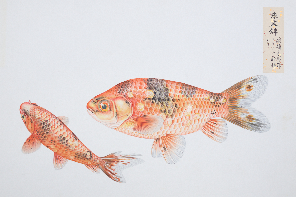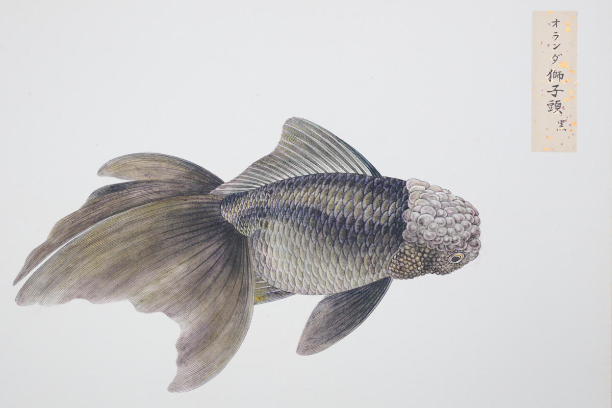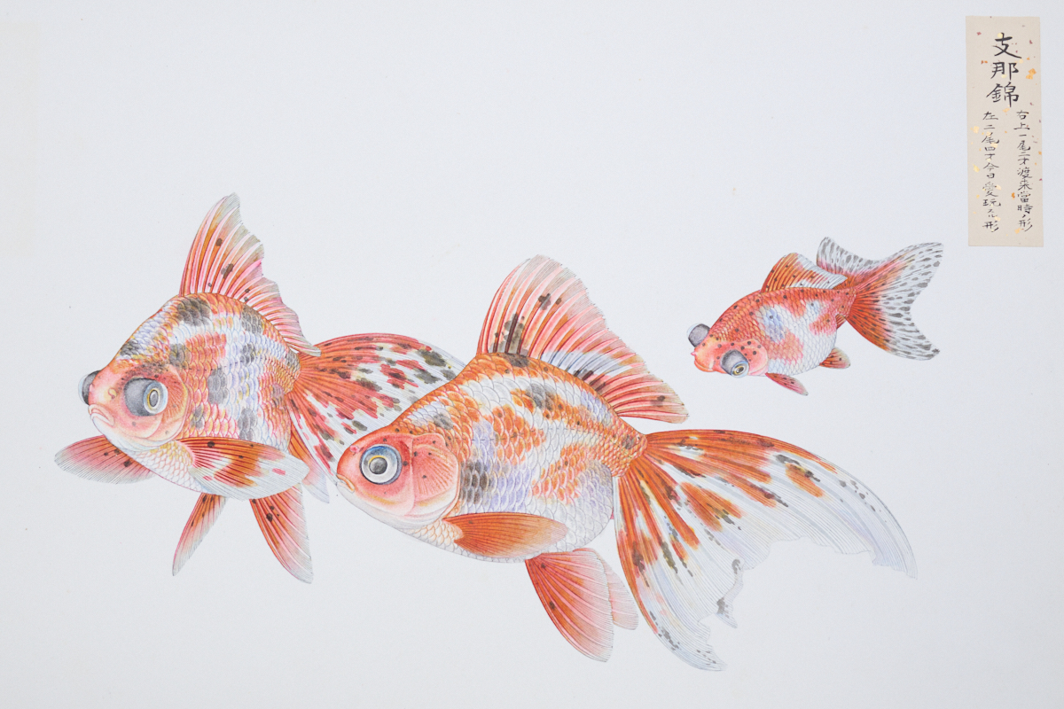 福地:鳥海書房の当時の店主は既に故人なので、どのような経緯で手に入れたのかはわかりません。私もいろいろ予測してみました。1970年代に亡くなった金魚研究の草分け的存在で大権威である松井佳一博士は、研究者でありながら金魚グッズコレクター。コレクションに『魚譜』があってもおかしくありません。そこで、店主が仕入れたのは松井博士のコレクションだとあたりをつけたのですが、違ったようです。こうなるともう、手掛かりなしですね。