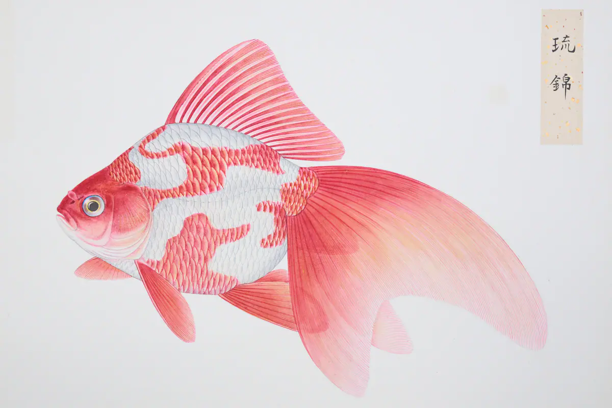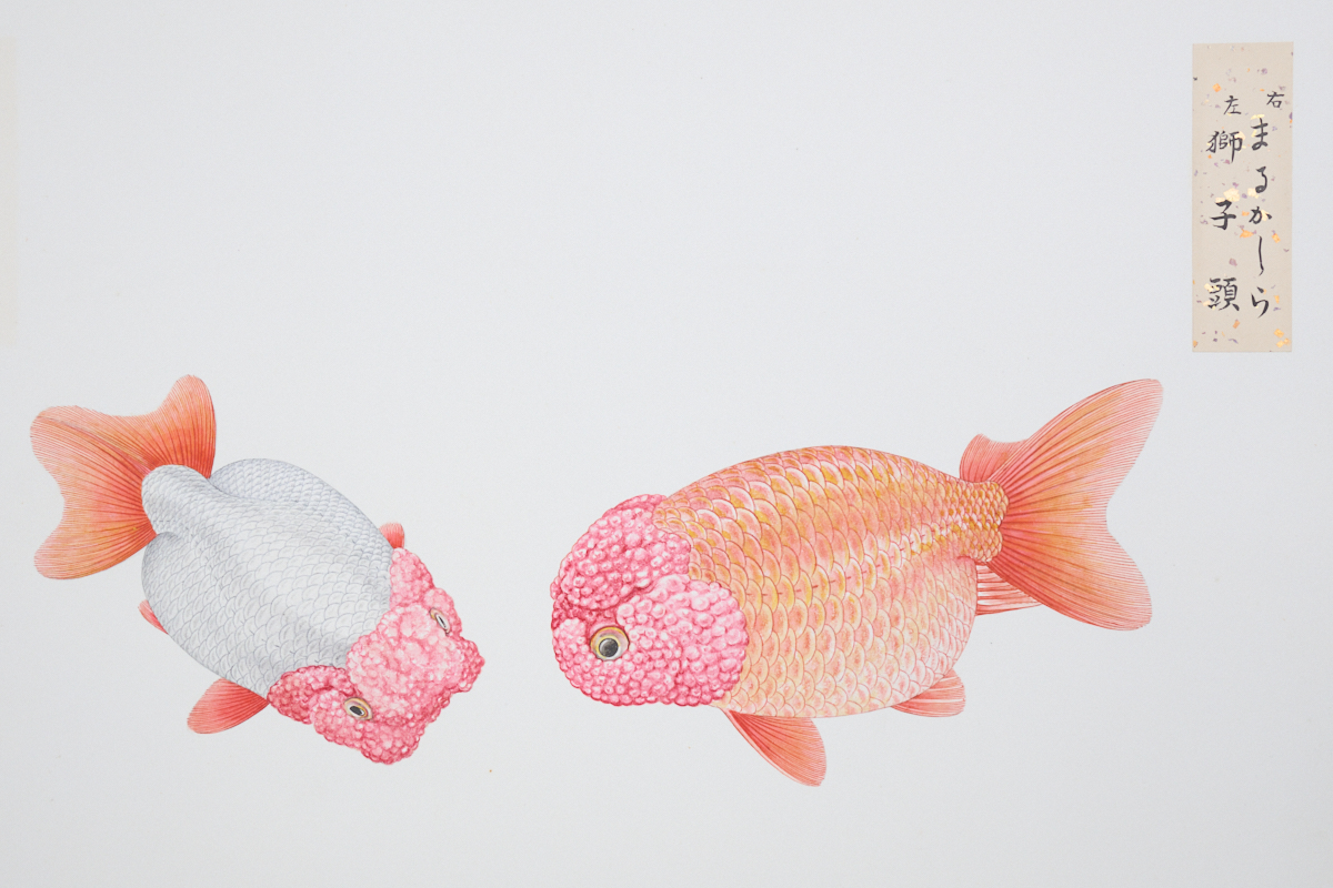 福地:拙著の表紙に使っているリュウキン、オランダ獅子頭ですね。博物画でありつつ、絵画としても成立している素晴らしい例だと思います。赤の使い方がなかなかいい。120年以上前の絵なのに、かなりきれいに残っていました。鳥海書房に渡るまで何人の手を経ているかはわかりませんが、皆さん大事にされてきたのだと思います。