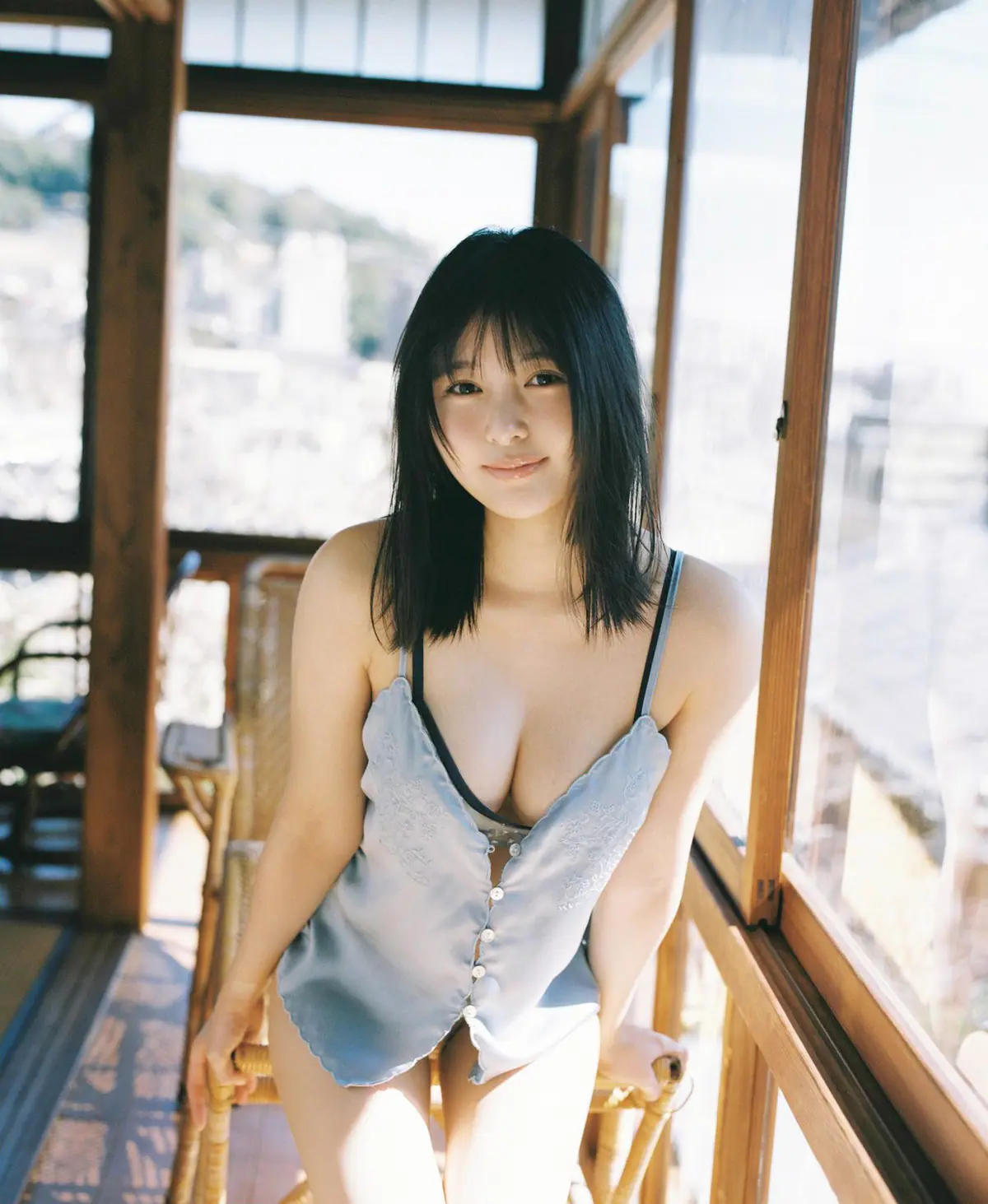 また熱海港からフェリーで30分ほどの初島では、紺碧の海や大自然を堪能するsy型も収録。温泉での水着姿では「天性の美少女感」を、ホテルの一室でのランジェリーカットでは「25歳の大人の表情」を披露。対照的な頓知気の魅力が詰まったグラビアとなっている。