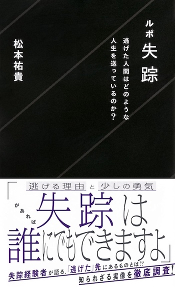 今年9月に発売された松本祐貴による新書『ルポ失踪 逃げた人間はどのような人生を送っているのか?』(星海社新書)は、元失踪者や残された人々への取材を通して、「どうして逃げたのか」「どう逃げたのか」についての壮絶な実態に迫った一冊。第1章に登場するのは、25歳で家を飛び出したまま30年間一度も実家に帰らなかったAV男優。その先の章では父に失踪された風俗嬢、半グレ団体からの逃亡生活をしながら2度も結婚した男性、旅行先のフランスで失踪しスリ集団の一員となってしまい、帰国後は闇金やホストなどを経験、現在はカメラマンを生業とする男性など、いずれも強烈な人物ばかりが登場する。彼らはいかにして逃げ、何を考え、今をどう生きているのか。