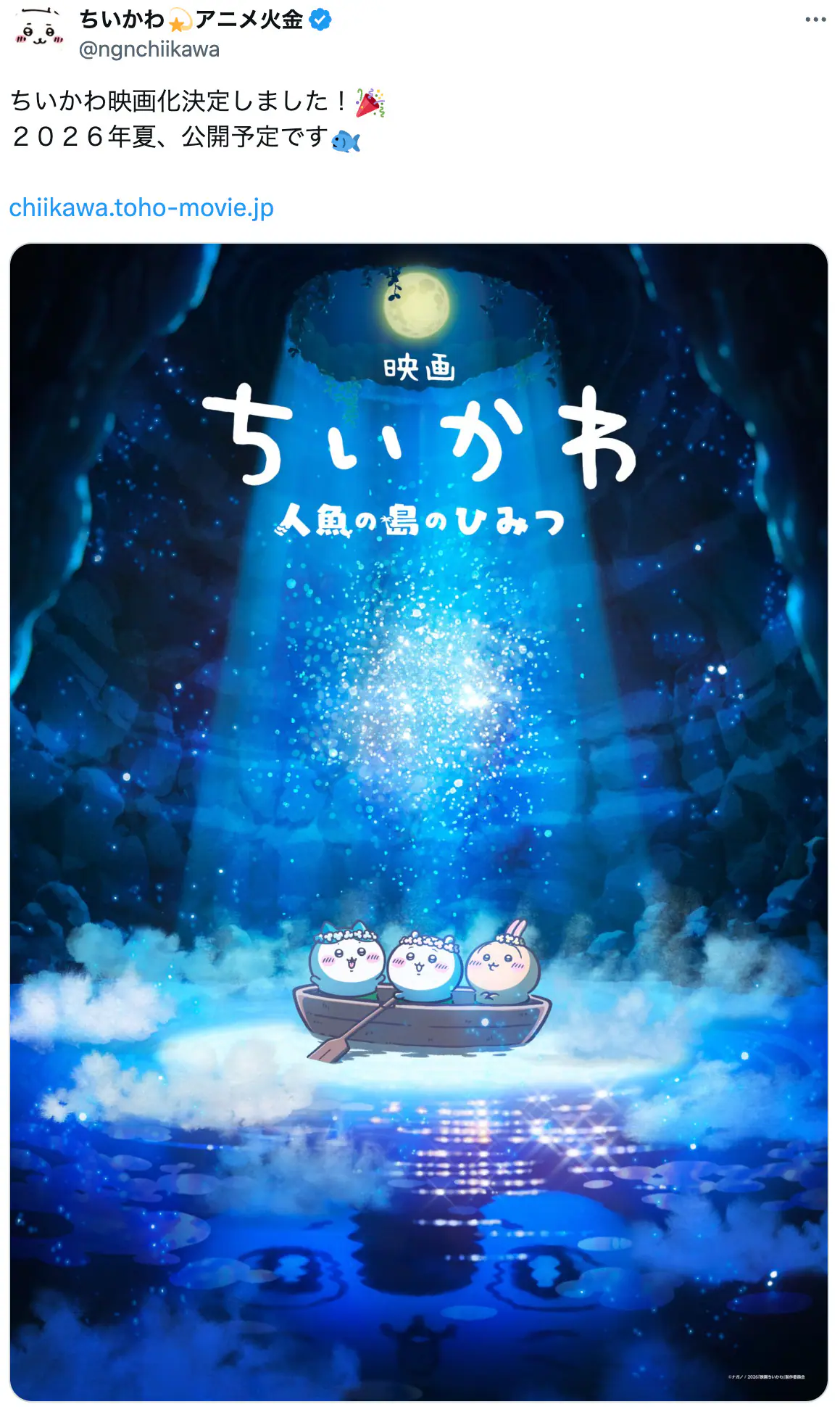 2026年夏、公開予定です🐟https://t.co/WAW0fbBAAg pic.twitter.com/2afVnL6j5W— ちいかわ💫アニメ火金 (@ngnchiikawa) November 24, 2025