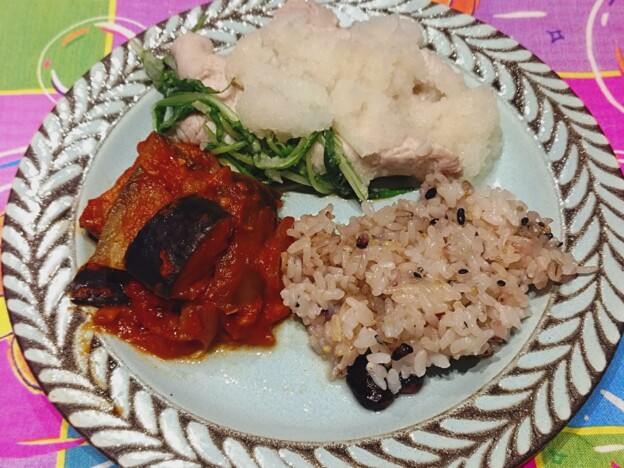 2品にまだまだ残っていた雑穀ごはんをプラスしてワンプレートランチにしてみた。「豚肉と水菜のおろし煮」、サッパリしててひじょうに美味しい。ボリュームがしっかりあるので、ノンオイルでもまったく問題ナシ。対して「なすのトマト蒸し煮」はかなり濃厚。しかし野菜しか使っていないので罪悪感ゼロなうえに、たくさん作れば常備菜としても活躍してくれそうで嬉しい。 夜は外食。友人との飲み会だったのだが、事情を話して和食居酒屋に行き、注文も刺身メインにしてもらった。