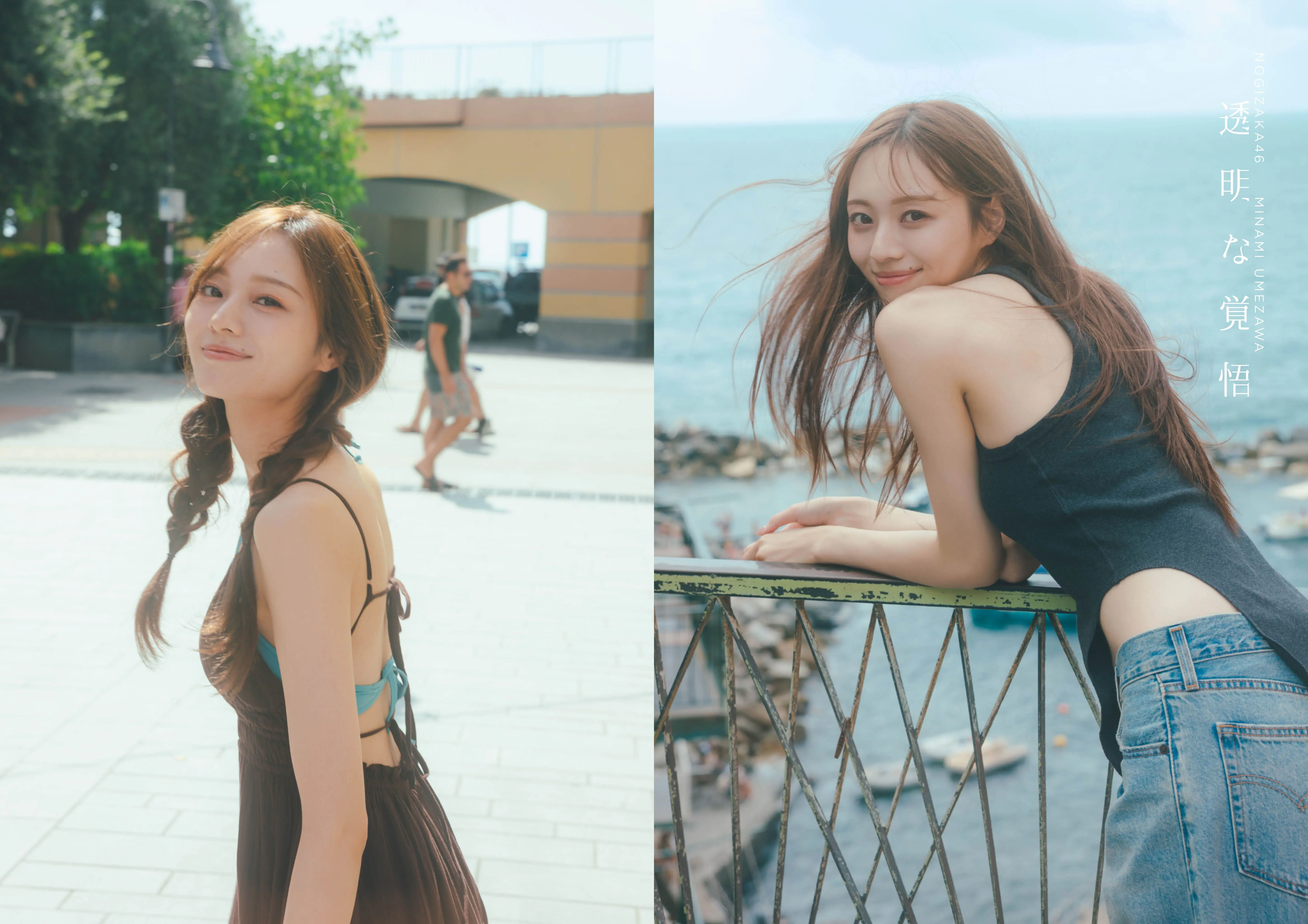 このたび公開された先行カットは、イタリア・チンクエテッレの街を散策する梅澤の姿を収めた一枚。水着にワンピースを重ねた、ビーチならではのコーディネートを軽やかに楽しんでいる。どこか少女らしさを感じさせるおさげヘアは本人のリクエストによるもの。あどけない笑顔と、大胆にのぞく背中の肌見せとのギャップに、思わず心を掴まれるカットに仕上がっている。