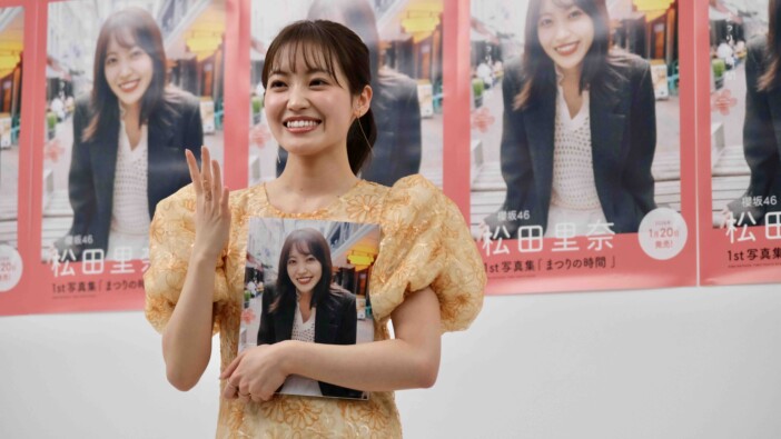 櫻坂46の松田里奈が20日、東京都内で写真集『まつりの時間』(幻冬舎)の刊行記念会見に登壇。写真集の撮影エピソードに加え、4月に開催されるMUFGスタジアム(国立競技場)でのライブに向けた思いを語った。