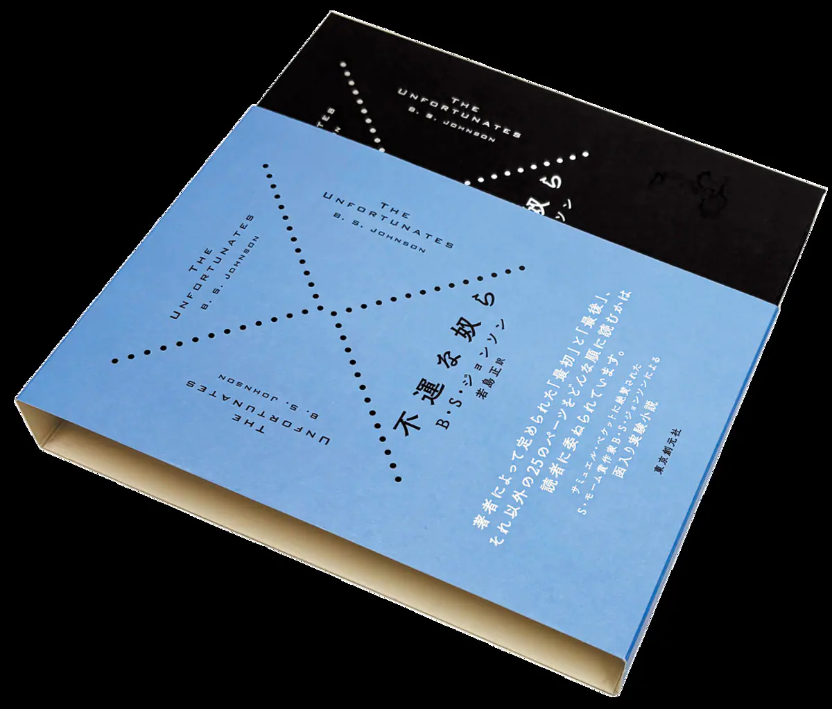 『不運な奴ら』は、『老人ホーム 一夜の出来事』『トロール』等で知られるB・S・ジョンソンによる実験的な作品。スポーツ記者である主人公の、若くして病死した親友の記憶を綴ったこの物語は、27のパーツ(小冊子、たった1ページというものもある)を函に収めるという異色の造本で英語版、ドイツ語版が製作された。