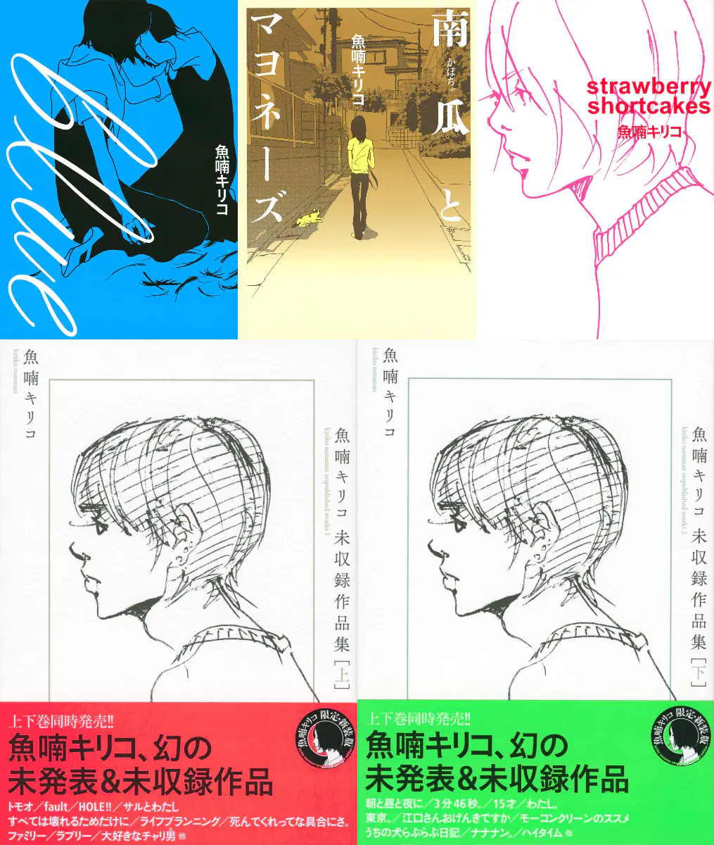 1993年、「月刊漫画ガロ」に掲載された『HOLE!!』でデビューした魚喃は、1996年に初の短編集となる『Water.』を刊行。『blue』や『痛々しいラヴ』、『南瓜とマヨネーズ』といった新作を精力的に発表し続け、90年代後半に誕生したこれらの作品はいずれも、「名作」に位置付けられるものとなっている。ゼロ年代に入ってからは発表のペースがゆったりとしていたものの、『strawberry shortcakes』のような名作がやはり誕生している。