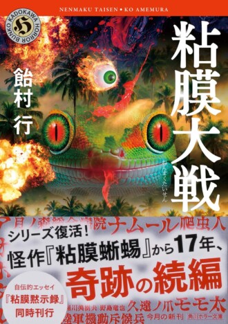 文庫オリジナル作品の刊行では、やはり飴村行の『粘膜大戦』(角川ホラー文庫)に注目しておきたい。第15回日本ホラー小説大賞長編賞を受賞した『粘膜人間』に始まる<粘膜>シリーズ最新作で、前作『粘膜探偵』(2018年刊行)より約8年ぶりの作品となる。かつてホラーファンを沸かせた怪作が、2020年代のホラーブームの最中に堂々たる復活を遂げた。太平洋戦争の時代と思しき日本を舞台にしながらも、河童や東南アジアの小国ナムールに生息する「爬虫人」など奇怪な存在が跋扈する陰惨怪奇な物語世界と、「グッチョネ」など独特の響きを持つ造語の数々が強烈な印象を残すのが<粘膜>シリーズの特徴だった。