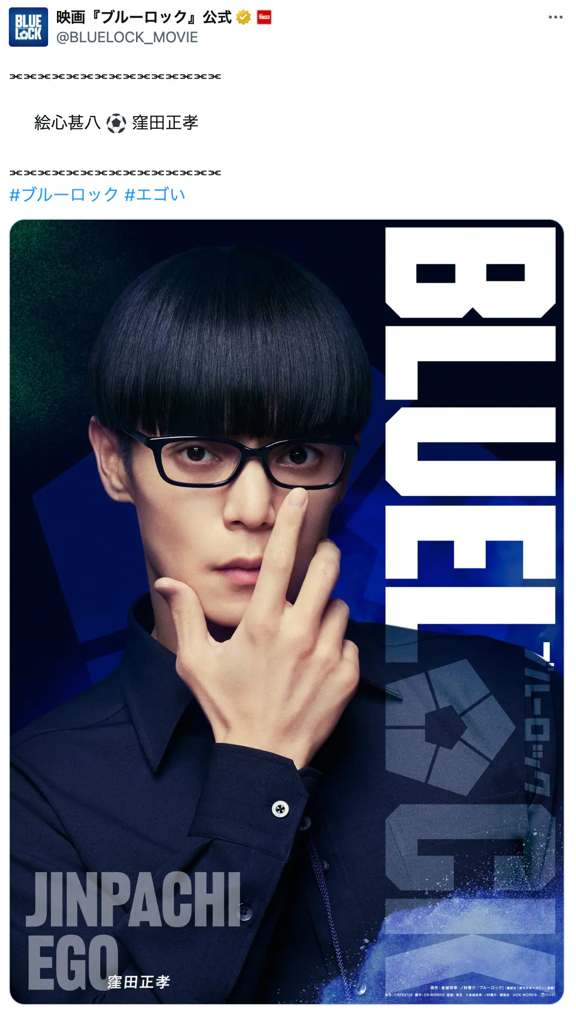 映画『#ブルーロック』8.7(金)KICK OFF⚽#エゴい pic.twitter.com/WOHmw8t1L2— 映画『ブルーロック』公式 (@BLUELOCK_MOVIE) February 7, 2026