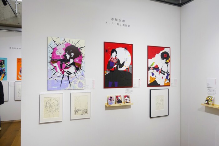 今回の「中村佑介 装画の世界展」では、手描きで仕上げられたこれら数多くの装画の原画、そしてデジタルでの着色作業を経た完成画稿を並べて展示。さらに装画が使われた実際の本も併せて展示されており、原画から本として印刷された最終的な仕上がりまでを並べて見ることができます。