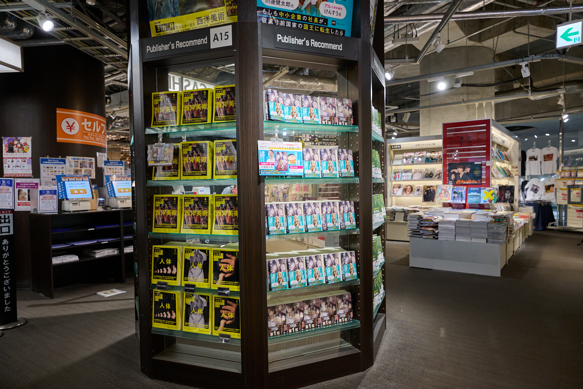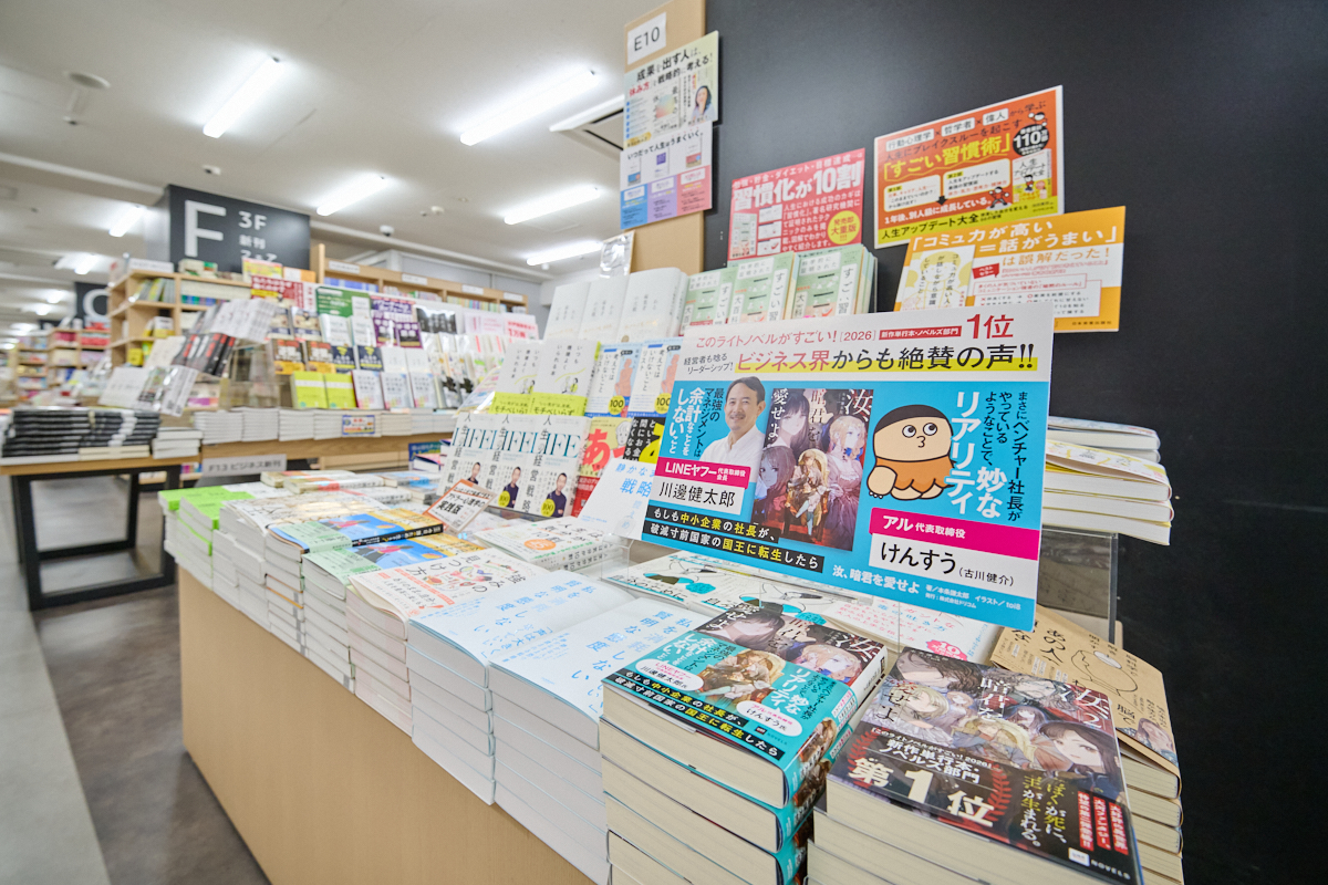 「文芸書とビジネス書がフロアでがっつりと別れている新宿本店では、ちょっと珍しい試みだと思います」と話すのは、紀伊國屋書店新宿本店でライトノベルを担当している石原つかささん。それが今回は、ビジネス書の平台という書店でもひのき舞台と言える場所に登場した。「出版社(ドリコム)の方から、ビジネス界の方が推しておられると聞いて、それなら試してみようとビジネス書の担当と話して置いてもらいました」