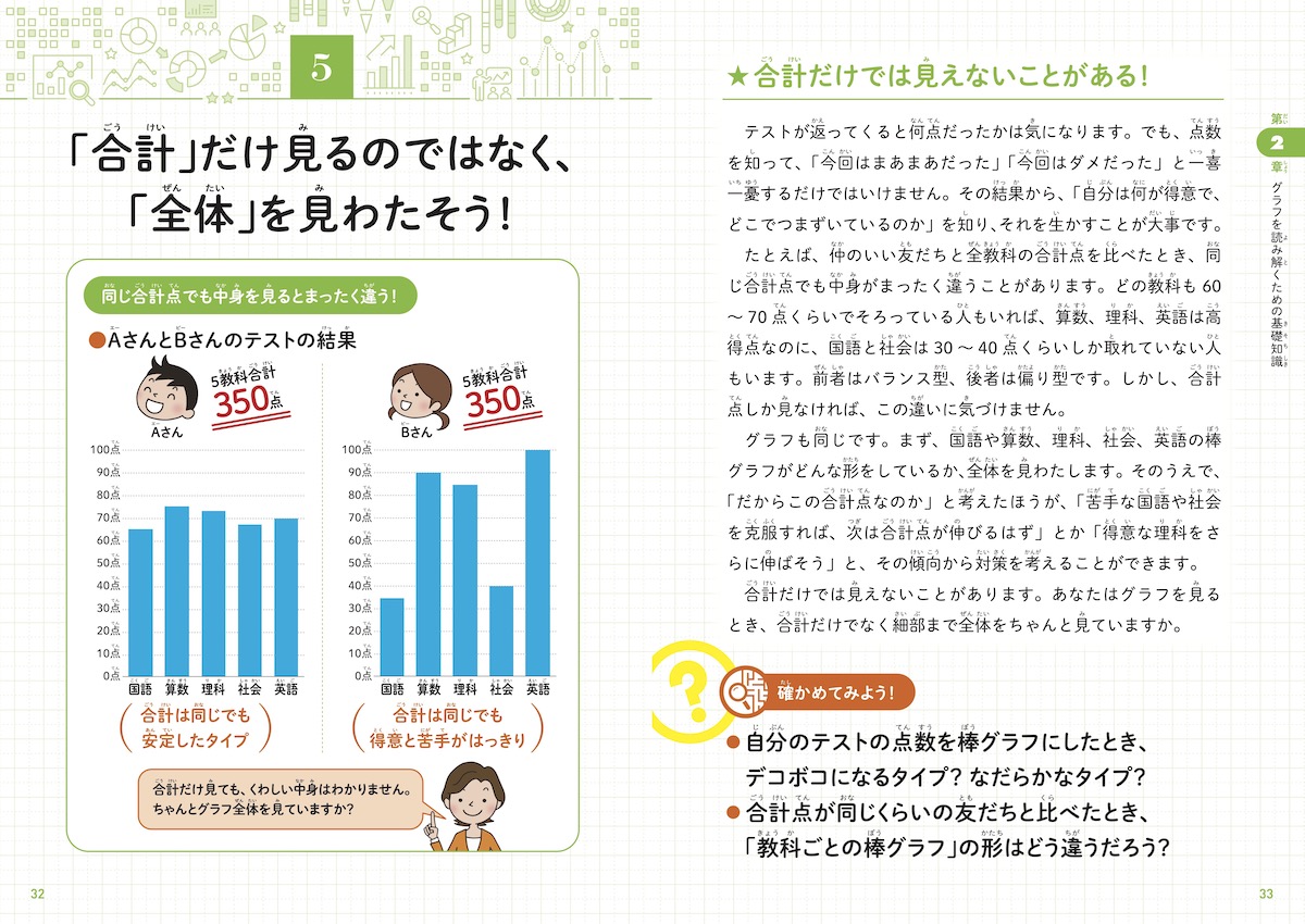 本書が扱うのは単なる「グラフの知識」ではない。数字や図表をどう読み解くのか。そこにはどんな情報が含まれ、誰がどのような意図でその形にしているのか。そうした問いを立てながら考える力こそ、本書の核にあるテーマだ。