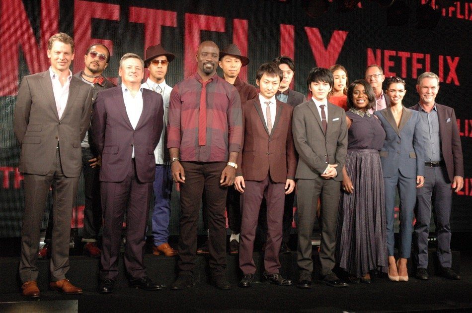 オンラインストリーミングサービスNetflixの特別プレゼンテーションイベントが、6月27日に六本木・ニコファーレにて開催された。本社CEOのリード・ヘイスティングス、同CCOのテッド・サランドス、日本法人代表取締役のグレッグ・ピーターズといった経営陣に加え、『オレンジ・イズ・ニュー・ブラック』に出演するウゾ・アドゥーバとルビー・ローズ、『Marvel ルーク・ケイジ』に出演するマイク・コルター、『ゲットダウン』の振り付けを手がけたリッチ&トーン・タローガ、そして『火花』に出演する林遣都、波岡一喜、好井まさお、村田秀亮の4人が登壇。さらに『オレンジ・イズ・ニュー・ブラック』のファン代表として歌手のBENIと、『ゲットダウン』のジャパン・アンバサダーであるEXILEのÜSAが駆け付けた。