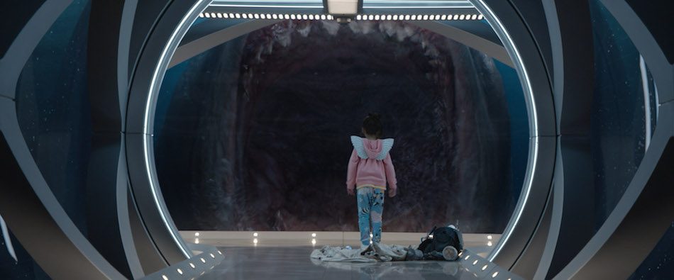 たとえば調査艇や救命艇などの閉塞的な空間に登場人物が置かれている時、正面のスクリーンではその登場人物の表情と視界の中心部分だけが提示される。しかしながら、そこに左右のスクリーンが加わると、いかにその人物が狭いところにいるのかがはっきりとわかり、閉塞的な空間を、開放的な映画館にいながらも同時に体験することができるわけだ。