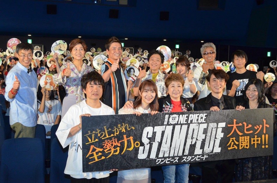 劇場版『ONE PIECE STAMPEDE』の公開記念舞台挨拶が10日、東京・丸の内TOEIで開催。モンキー・D・ルフィ役の田中真弓をはじめ “麦わらの一味”キャスト9名、ゲスト声優のユースケ・サンタマリア、指原莉乃、さらに大塚隆史監督が登壇した。