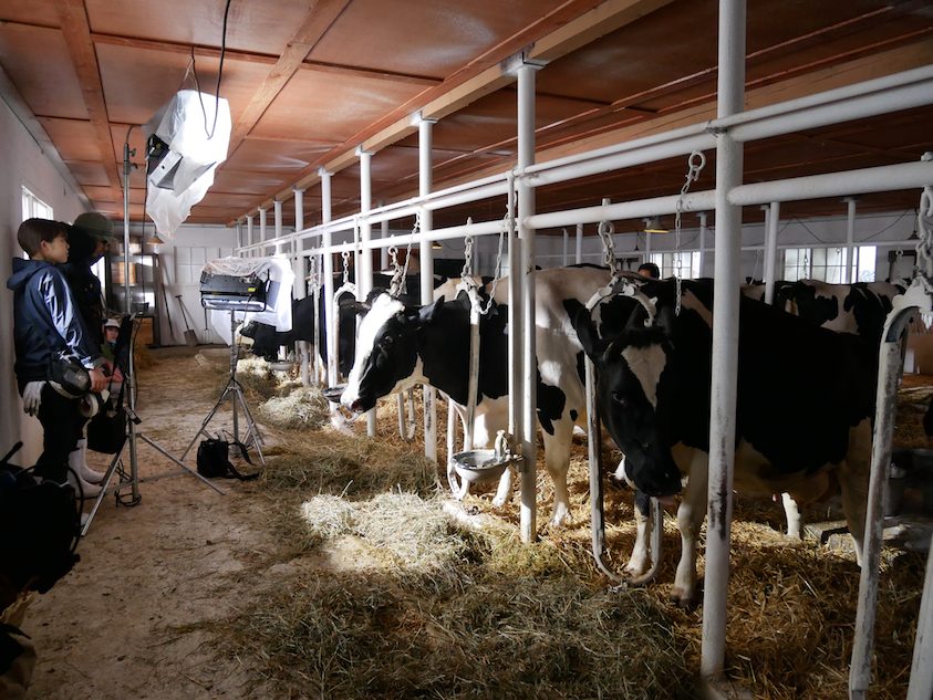 「他の作品では、牧場で撮影したことはありましたが、今回、牛を撮影場所に運んで撮るというのが初めてで、その土地の地権者と酪農家の両方の許可を得た上で、農協に話に行って、実際に撮影に入るという流れでした。マコプロの皆さんが『大草原の少女ソラ』のロケハンのために十勝に来たシーンは、牛をバラバラの位置に移動させるのが大変でしたね。定位置に移動させようとするのですが、動物だから自分が行きたくないところには行きたくないだろうし、一頭が移動するとほかの牛も同じ方向に向かって動いてしまうんです。同じ大きさの牛を別の酪農家さんから揃えたり、牛を扱うシーンは特に大変でした。他にもじゃがいも畑のシーンは、撮りたいシーンのために逆算してジャガイモを育てたり、地元の方のご協力も得てやっていました」