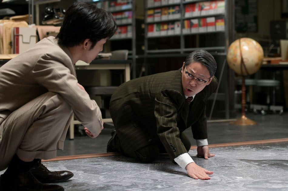 まず紹介したいのが、政治と“岩ちん”こと岩田幸彰(松坂桃李)とのやりとりだ。政治は自身の右腕として岩田に絶対の信頼を寄せている。政治が「俺のオリンピック!」と一声あげれば、岩田は即座に国立競技場の模型を用意する。亀倉雄策(前野健太)がオリンピックの総合デザイン顧問を断りかけたときも、政治の「岩ちん!」という一言で、即座にフォローに入る岩田。阿吽の呼吸で仕事を全うする政治と岩田の関係性を、阿部と松坂はリズミカルなやりとりで表現する。バー「ローズ」で明かされた岩田“画伯”のくだりでは、岩田にデザインの才能があると信じている政治のキラキラとした目と、真実を打ち明けられず、マリー(薬師丸ひろ子)に助けを求める岩田の表情が面白い。
