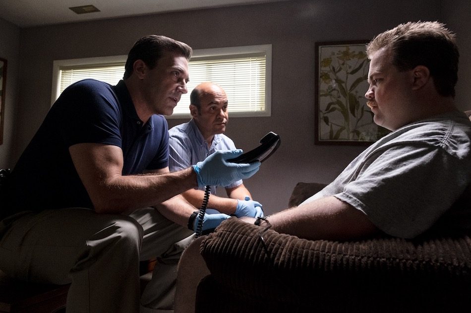 公開された場面写真では、逮捕を急ぐトム・ショー(ジョン・ハム)らFBIがジュエルを睨みつけるように受話器を渡し、ボイスサンプルを強要する事情聴取の場面が描かれている。