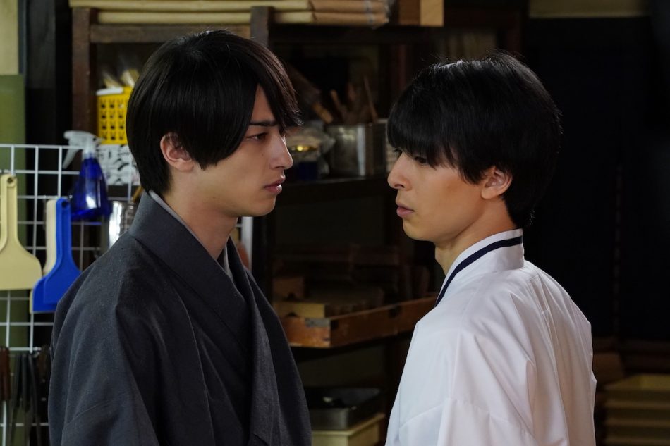 公開された場面写真は、七桜を心配した見習い職人の城島(高杉真宙)と七桜(浜辺美波)が話しているとき、その2人の間に椿(横浜流星)が割って入ったシーンを捉えたもの。七桜と仲良く話す城島に向かって、椿がある一言を放つ。第1話で母の無実を証明しようと、正体を隠したまま光月庵に乗り込んだ七桜。第2話では、古くからの得意先に自ら作った最中を届けることになり、女将・今日子(観月ありさ)の妨害にも負けず、厨房であんこ作りを試みる。
