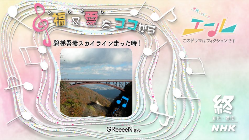 これまでも個性豊かな“エール”あふれる写真が掲載されてきたが、本日登場したのは主題歌「星影のエール」を手がけたGReeeeN。福島の観光スポット、磐梯吾妻スカイラインを走った際の1枚を投稿している。