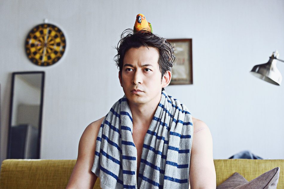 公開された場面写真では、自宅では一切洋服を着ずに全裸で過ごす岡田演じるファブル(佐藤アキラ)と彼がかわいがっているペットのインコのカシラの姿が切り取られている。アキラが「プロの一般人」になるための第一歩として飼い始めたペットのインコは、様々な名前を呼んだ結果、唯一反応したのが「カシラ」だったことから名前が「カシラ」となった。