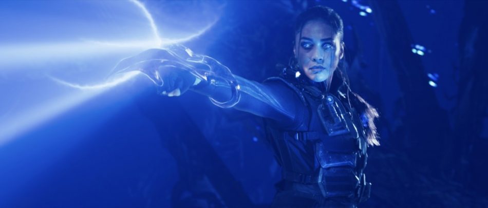 『スカイライン-逆襲-』本編映像公開 覚醒した主人公ローズが味方に“⻘い光”を放つ様子が