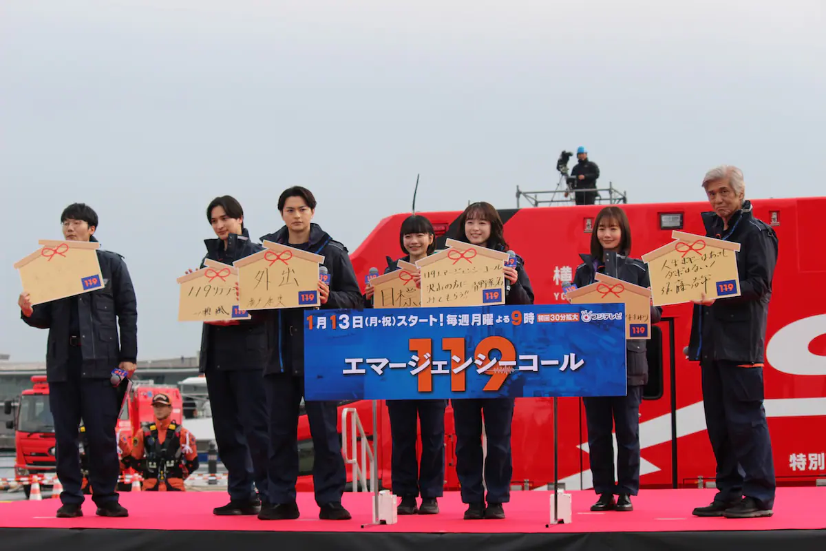 清野菜名が主演を務める月9ドラマ『119エマージェンシーコール』(フジテレビ系)の会見が1月12日に横浜赤レンガ倉庫前イベント広場で開かれ、主演の清野のほか、共演の瀬戸康史、見上愛、一ノ瀬颯、前原滉、中村ゆり、 佐藤浩市が登壇した。