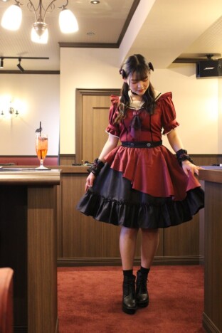 また制服については、「アシンメトリーなスカートにしたいというのがあり、それをベースに自分が好きなセーラーカラーを取り入れたいなというのが私の中で強くありました」と語った。続けて、「えんじ色に黒色という色味には構想があって、いつもライブ衣装でお世話になっているスタイリストの佐野夏水さんに衣装のデザインをお願いしました」「 パターン引きは、ロリーターブランドのVictorian maidenというブランドの方に衣装の型を作っていただいたりと、バンパイアらしいクラシカルな上品さを意識して衣装を考えました」と細部へのこだわりも明かしてくれた。