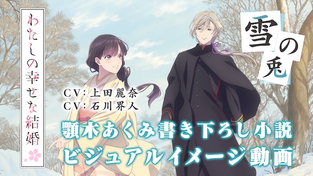 あわせて、美世と清霞が冬の雪道を楽しむ描き下ろしイラストと、原作者・顎木あくみが書き下ろしたショートストーリーに、美世(CV:上田麗奈)と清霞(CV:石川界人)の撮り下ろしボイス付きビジュアルイメージ動画、『わたしの幸せな結婚』第2期Blu-ray&DVD(全3巻)の早期予約特典と店舗オリジナル特典のイラストも到着。なお、4月25日に発売される第1巻には、先着でアニメ描き下ろしイラストを使用した特製枡が発売日にプレゼントされる。