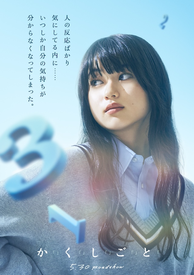 あわせてティザービジュアルと特報映像も公開。ティザービジュアルには、「もしも、好きな人の気持ちが見えてしまったら——」「この“かくしごと”を知ったとき、純度100%の涙が溢れ出す」と、物語の展開を期待させるコピーが並ぶ。また、ティザーソロビジュアルには、それぞれ異なる記号と想いの一部が切り取られたコピーが記されている。