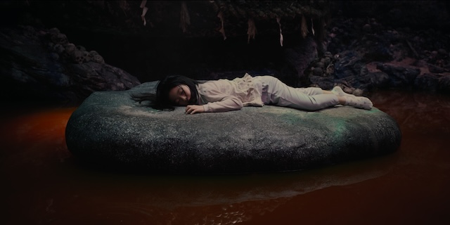 本予告は、阿川大悟(柳楽優弥)がこれから起こる戦いに覚悟を決め、銃口を突きつけ発砲する衝撃シーンで幕を開ける。豊かな自然に恵まれ周囲から完全に隔絶された村“供花村”に駐在として赴任することとなった大悟は妻・有希(吉岡里帆)、娘のましろ(志水心音)との生活を始めるが、消息を絶った前任の駐在・狩野が残した「お前らは人を喰っている」という信じがたい言葉を耳にしたことで、徐々に村人たちの異質さを感じていく。そして、大悟と警察が村を絶対的な権力で支配する一族・“後藤家”のある秘密を紐解いていくのだが、そのひた隠しにされている後藤家の謎は、70年前の過去にまで遡るのだった。その謎のカギを握るのは、燃え盛る炎を背に妖艶な笑みをみせる若き後藤銀(恒松祐里)。正気を失ったと揶揄される銀は、優美な着物を纏う佇まいとは裏腹に、鋭い鎌を振り下ろす狂気な姿を見せつける。はかなげにも見えた銀はどのようにして供花村を支配する後藤家を作り上げていったのか。そして、その過程で生まれたおぞましい村の呪いとは。そんな70年前から受け継がれてきた呪いと憎しみの連鎖を断ち切り、大切な家族を守ろうと大悟と後藤恵介(笠松将)はそれぞれの想いを胸に行動に起こす。
