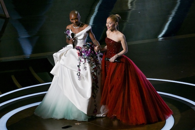 授賞式は開幕と同時にピークを迎えたと言っても過言ではないだろう。従来であれば司会者によるモノローグから始まる式だが、今年は『ウィキッド ふたりの魔女』からシンシア・エリヴォとアリアナ・グランデが歌唱パフォーマンスを披露した。
