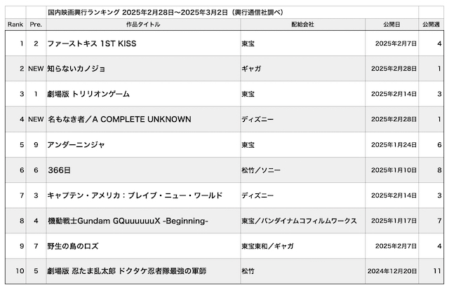 『今週の映画ランキング』(興行通信社):https://www.kogyotsushin.com/archives/weekend/
