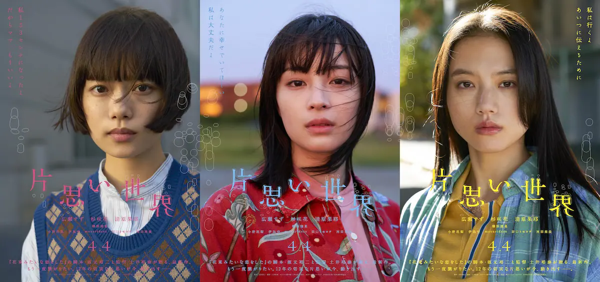 4月4日に公開される映画『片思い世界』より、広瀬すず、杉咲花、清原果耶がが演じる3人の主人公のキャラクター別映像とソロポスターが公開された。