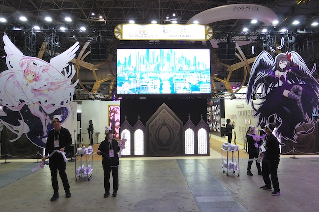 単独の作品では『劇場版 魔法少女まどか☆マギカ〈ワルプルギスの廻天〉』を大きくアピールするブースもあって、入場口の真正面に鹿目まどかと暁美ほむらがそれぞれ天使と悪魔のようなスタイルで大きく飾られ、来場者の目を奪っていた。ブースでは映画の限定前売り券も販売。日に日に高まる最新作への関心が、劇場版最新作の公開で一気に爆発するのはいつになるかが気になるところだ。