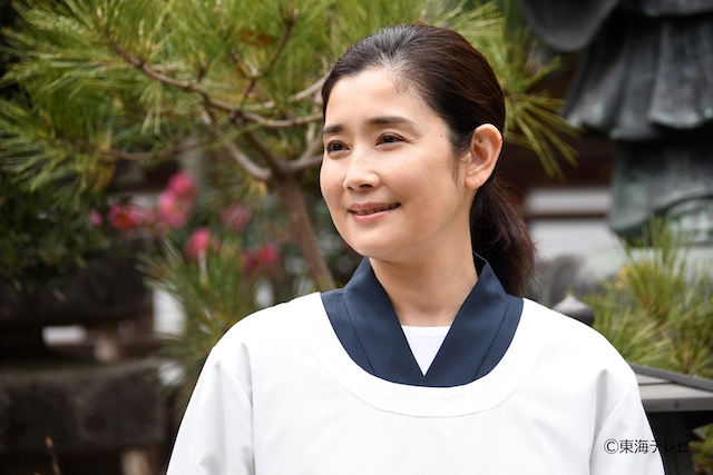 石田は作務衣の上にかっぽう着という、“坊守(住職の妻)”らしいスタイルで登場。アートディレクターの「二人を優しく見つめるような雰囲気で」という指示通りの表情で、撮影もスムーズに進んだ。