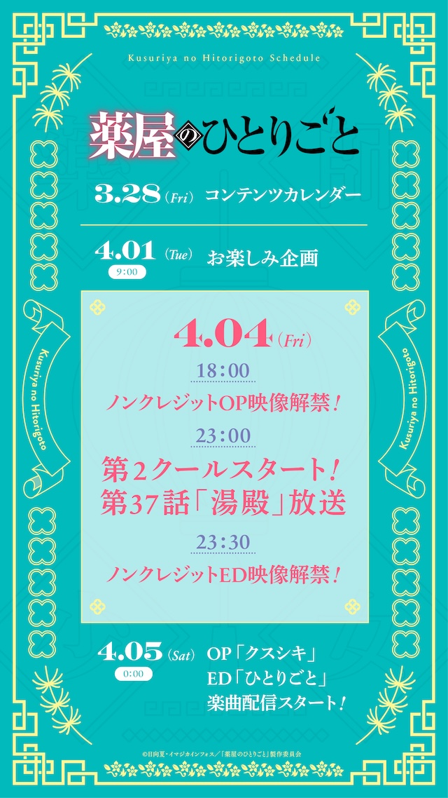 3月28日に放送された『薬屋のひとりごと』第2期第1クール最終回放送後に、4月4日から放送される第2期第2クールPVとキービジュアルが公開された。