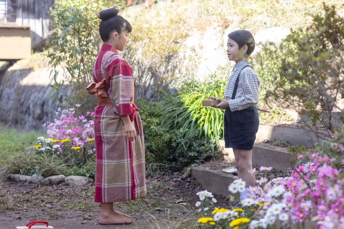 『あんぱん』第1話、柳井嵩(木村優来)がハチキンおのぶ(永瀬ゆずな)と出会う