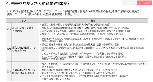 編制方針もあるためすべてのジャンルが対等という形にはならないが、過去の功績を元にした上意下達による編制方針の決定といったプロセスが薄れていけば、勢いのあるジャンルがスピーディな意思決定の下で番組作りに取り組めるようになり、結果として視聴者の支持を集めるようなことも起こるかもしれない。「未来を見据えた人的資本経営戦略」の中で挙げられている「戦略的人材配置と評価精度の最適化」や「時代に適応するスキル開発の強化」が実践されるなら、番組制作の面でもより時代に即応したものが生まれてくるような変化が起こるかもしれない。