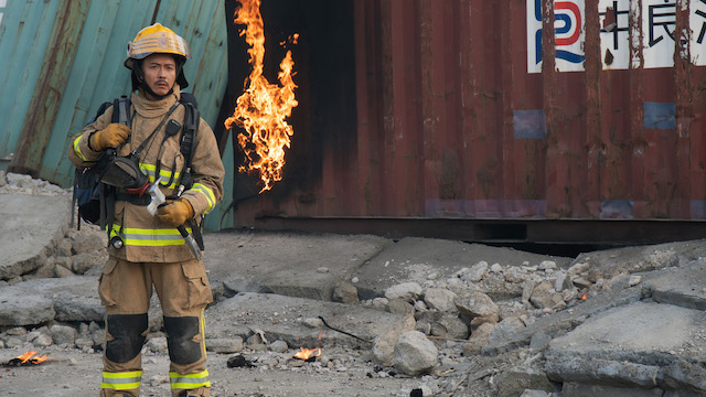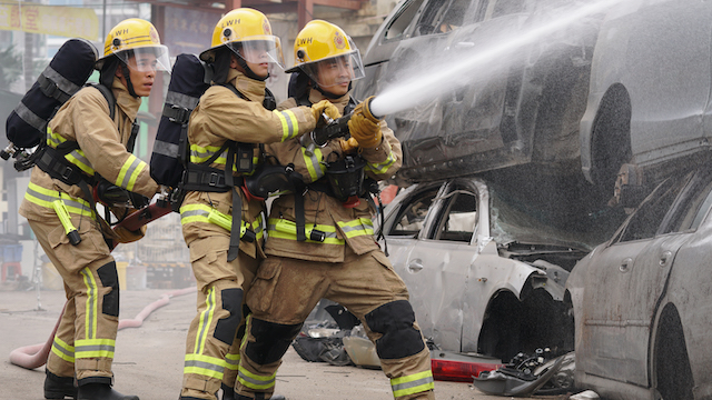 あわせて、負傷した仲間を支え合う新人消防士たちや、無線で必死に呼びかける美しきチーム隊長メイエン(ルイーズ・ウォン)、そしてファンと政府高官セシリア(カレン・モク)が対峙する姿などが捉えられた場面写真も公開された。