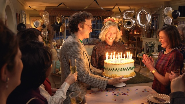 そんな本作において、人間の主人公と呼べる存在がリチャード(トム・ハンクス)とマーガレット(ロビン・ライト)だ。1945年にこの家を買った第二次世界大戦帰りのアル(ポール・ベタニー)と妻のローズ(ケリー・ライリー)の間に生まれたリチャードは、高校時代にマーガレットと出会い、恋に落ち、そして結婚して家族になる。彼が初めて彼女を家に連れてきた日、暖炉の前で結婚式を開いた日、子どもを授かり夢を諦めた日、50歳の誕生日、そして老いていく姿を、我々観客は観続ける。それは、あまりにも普通な人生で、“映画的な物語”ではないかもしれない。しかし、この作品を観ていた約100分の間に私の中にもリチャードやマーガレット、この家で暮らした人々、そしてこの家に思い出が積み重なり、ラストは思わず胸に込み上げるものがあった。