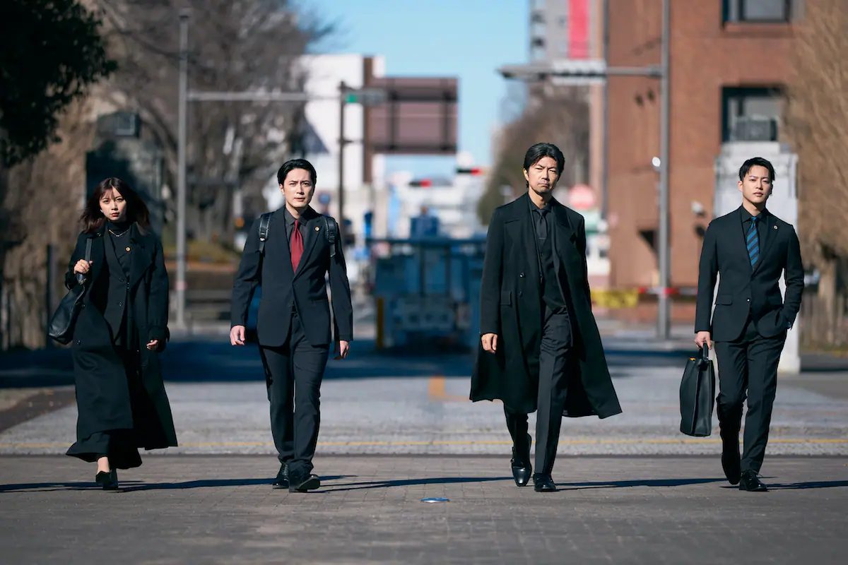 公開された場面写真には、ピース法律事務所の宇崎、轟、伊野尾、高井戸が並び立つ姿や、宇崎が初めて事務所に訪れた際の様子などが切り取られている。