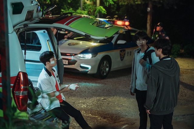 シウンを中心に、チェ・ヒョンウク演じるスホ、ホン・ギョン演じるボムソクが、ヨンビンら不良グループに抵抗する中で、友になっていくさまが描かれる本作。シウンは、多忙な両親の間で、幼い頃から孤独に過ごしてきた。スポーツコーチの父(キム・ソンギュン)と、オンラインで数学教師をしている母(コン・ヒョンジュ)は、幼いシウンが居るときも、彼の目前で体の弱いシウンのことで言い争い、、彼は両親に心を開けないまま孤独に勉強に打ち込んできた。高校生となった今、シウンは常にひとりで家に居る。生きることに忙しい両親は、子供のことが気にかかりながらも、構う時間が作れないのだろう。そんな子供がたくさんいることを本作は暗に訴えかける。シウンの孤独は、彼だけに限らず、多くの子供たちが抱えているものだろう。
