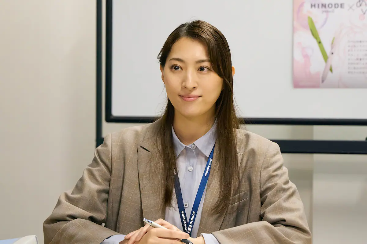 今回、私が演じた植木奈緒子は、働く女性としての悩みや葛藤を抱えた人物です。時代は変わりつつありますが、この作品が“何かを考える”きっかけになったらうれしいです。映像の現場で、ここまでしっかりとしたせりふをいただいたのは初めてで。緊張とうれしさが一気に押し寄せてきました。主演の松田さんは穏やかで、人に対してとてもフラットな印象の方。真面目で、周りが自然と支えたくなるような魅力がある“愛されキャラ”なんだなぁと感じました。ご一緒できて、楽しかったです!