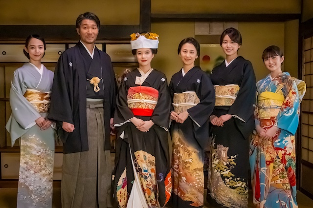 さらに、特別に撮影された、芳根、高橋努、紺野まひる、森カンナ、咲妃みゆ、小川彩(乃木坂46)の関谷家が集合した“家族写真”も初公開。結婚式の衣装である黒の振袖に身を包んだ芳根を中心に、それぞれ和装を着用し、朗らかな笑顔を見せている。